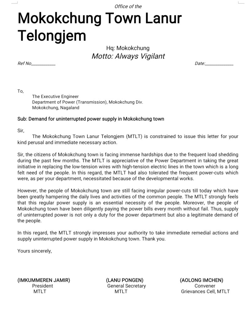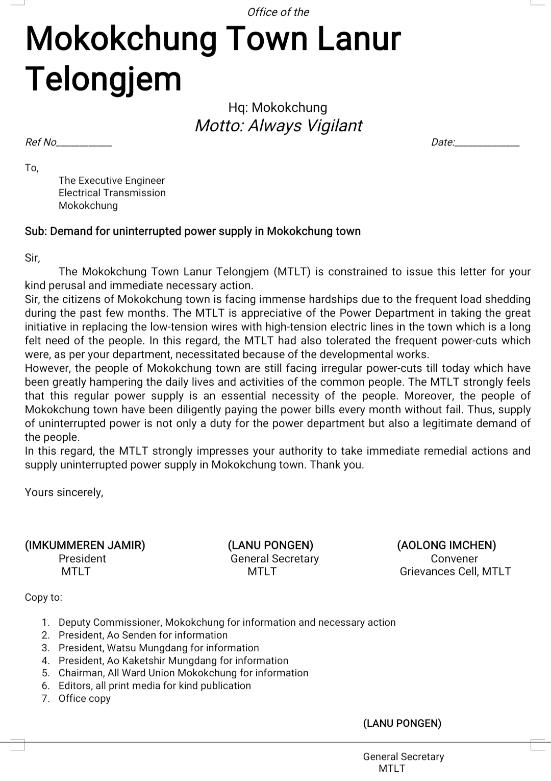 Breaking News, MTLT Mokokchung Town Lanur Telongjem(MTLT) demands for uninterrupted power supply in Mokokchung Date: June 12, 2020Author: nokinketer 0 Comments Share this: Click to share on X (Opens in new window) X Click to share on Facebook (Opens in new window) Facebook Like Loading...