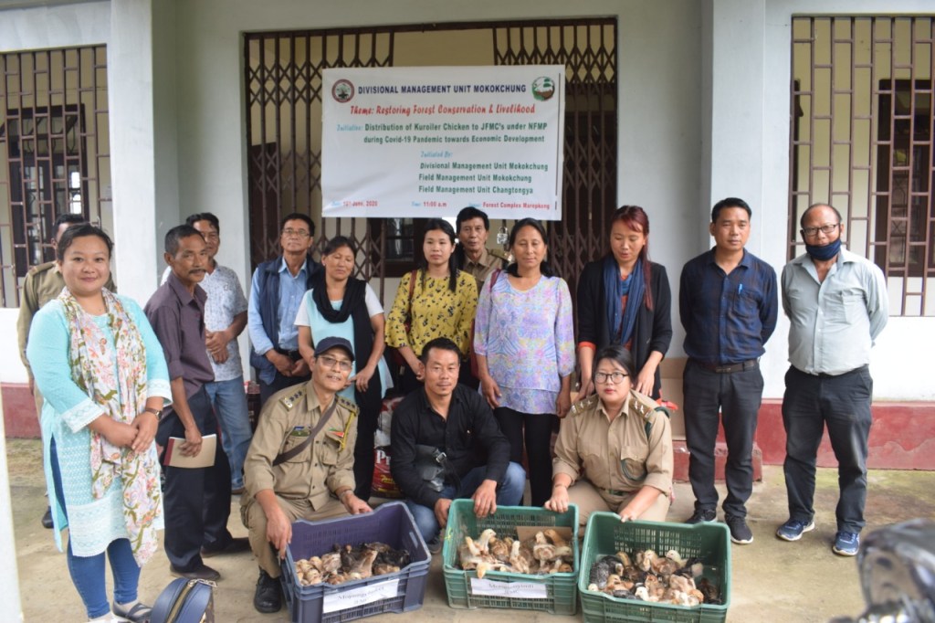 Amidst the lockdown, a program with the initiative on “Distribution of Kuroiler Chicks to JFMCs under NFMP during COVID-19 Pandemic towards Economic Development” was held on 16th June, 2020 at Forest Complex Marepkong. The programme was initiated by Divisional Management Unit Mokokchung, FMU Mokokchung and FMU Changtongya.