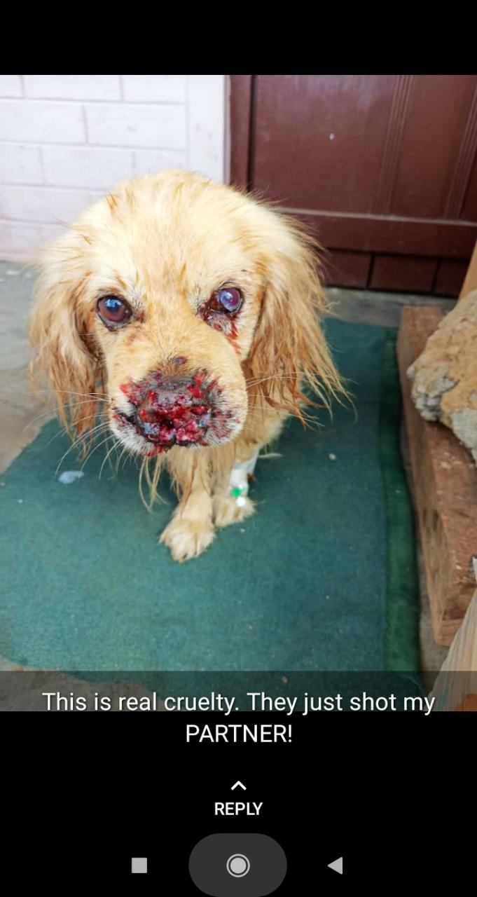 In another incident from the same village, a dog named Partner was severely injured as he was shot by some villagers right on his face.