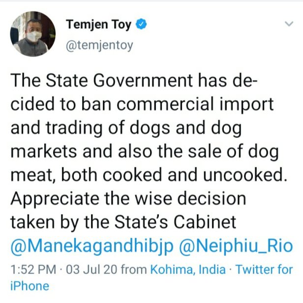 The decision seems to have taken after a picture of a dog market in Nagaland went viral in social media following severe criticisms.