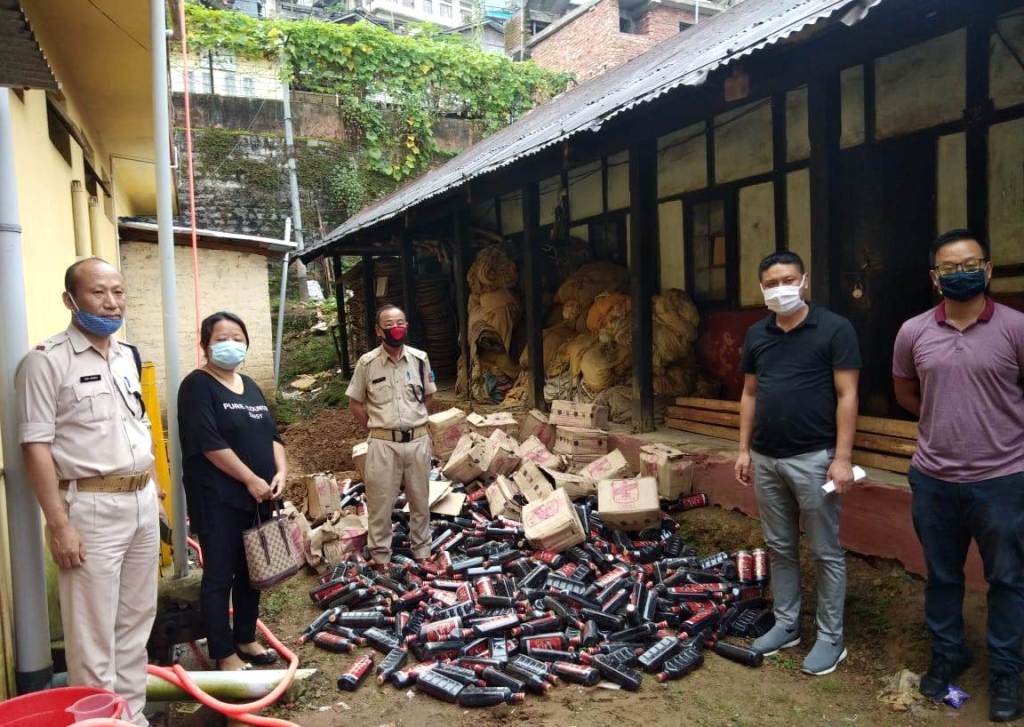 A total of 99 (Ninety Nine) cases of seized liquor (Mc Rum 750 M.l) which were seized on different occasion was destroyed today 4th September 2020, at the premises of Police Station – 1, Mokokchung. The consignment was destroyed in presence of Temsuchuba SDO(C) Mokokchung, Chuba SDPO, Lipoksenla APP, A Susang Ao P.I, DPRO and O/C PS-1 Mokokchung.