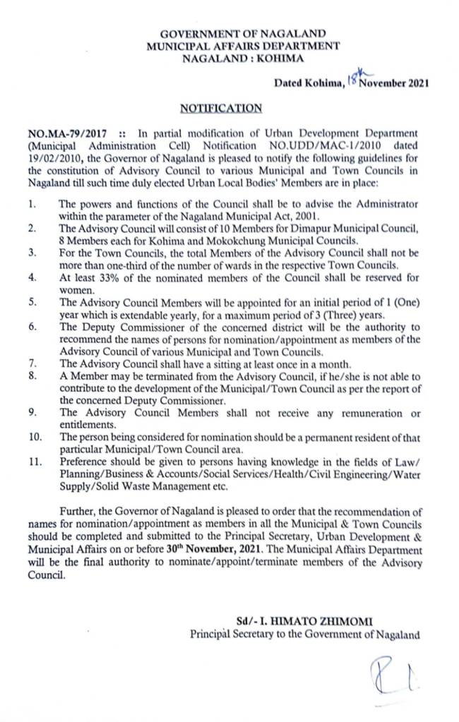 Land Owners’ Board-i Government of Nagaland, Municipal Affairs, Department sangdong Order No. MA- 79/2017 anogo Kohima, 18th November, 2021 khenyongi magizüker, ta Land Owners’ Board Ungma, Mokokchung & Khensa ajangsa metetdaktsü.