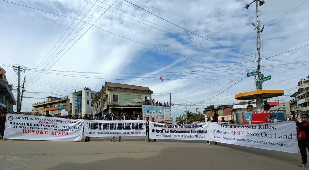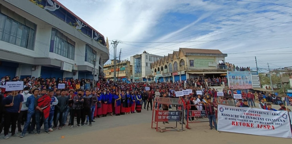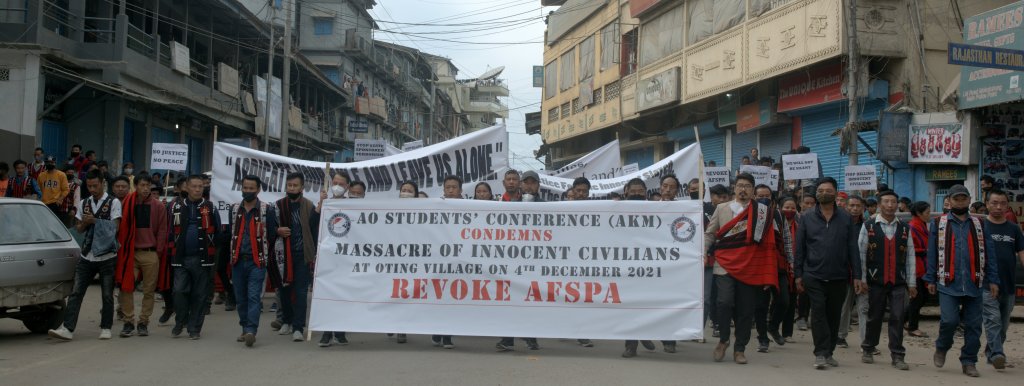 Mon district kübok Oting yimdak Dec 4, 2021 nü India sepoy-temi tai maketer nisung aika tepsetba asoshi tejashi sayuba den AFSPA anema Ao Kaketshir Mungdang (AKM)-i Dec 6, 2021 nü ola madok lungkak aitba (silent procession) sentong ka ayongzüka kaogo.