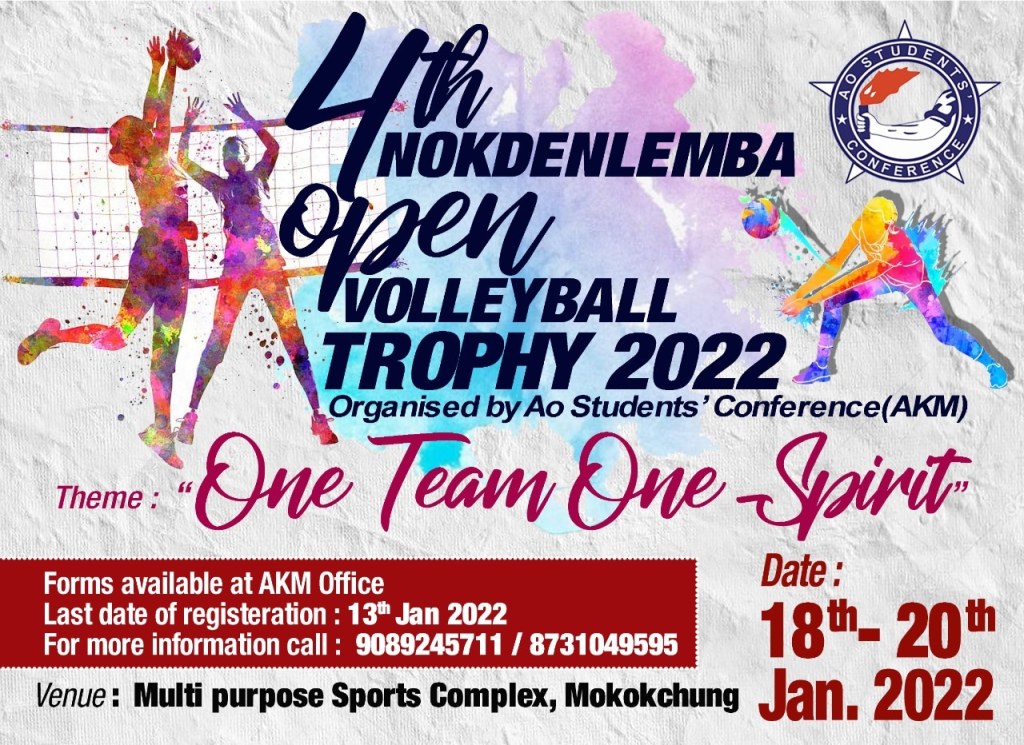 The 4th edition of Nokdenlemba Open Volleyball Trophy 2022 will commence tentatively from 18th -20th January 2022 under the theme “One Team-One Spirit” at Multi Sports Complex in Mokokchung.