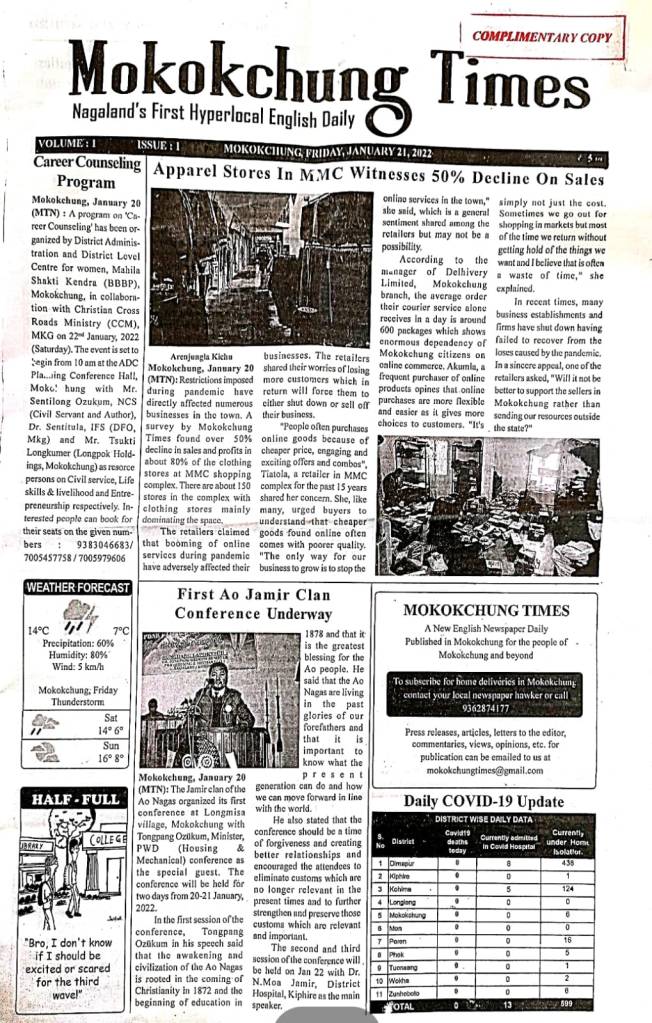 Breaking News Mkg nungi English oshi nung osang kaket ka adok tenzükogo Date: January 21, 2022Author: Sashimeren Jamir 0 Comments Mokokchung Town Baptist Arogo, Pastor, Rev. Ponen Longchar (L)-i Nagaland nung mezüngbuba hyperlocal English daily ka tenüng agi “Mokokchung Times” osang kaket sarasadema lapoktsüdang Mokokchung Times Editor, Wb. Limalenden Longkumer (R) densema noksa nung angur. Iba osang kaket ya anogoshi Mokokchung nungi adoktsü. Mokokchung, 21st January, 2022 (Nokinketer Image) Share this: Click to share on X (Opens in new window) X Click to share on Facebook (Opens in new window) Facebook Like Loading...
