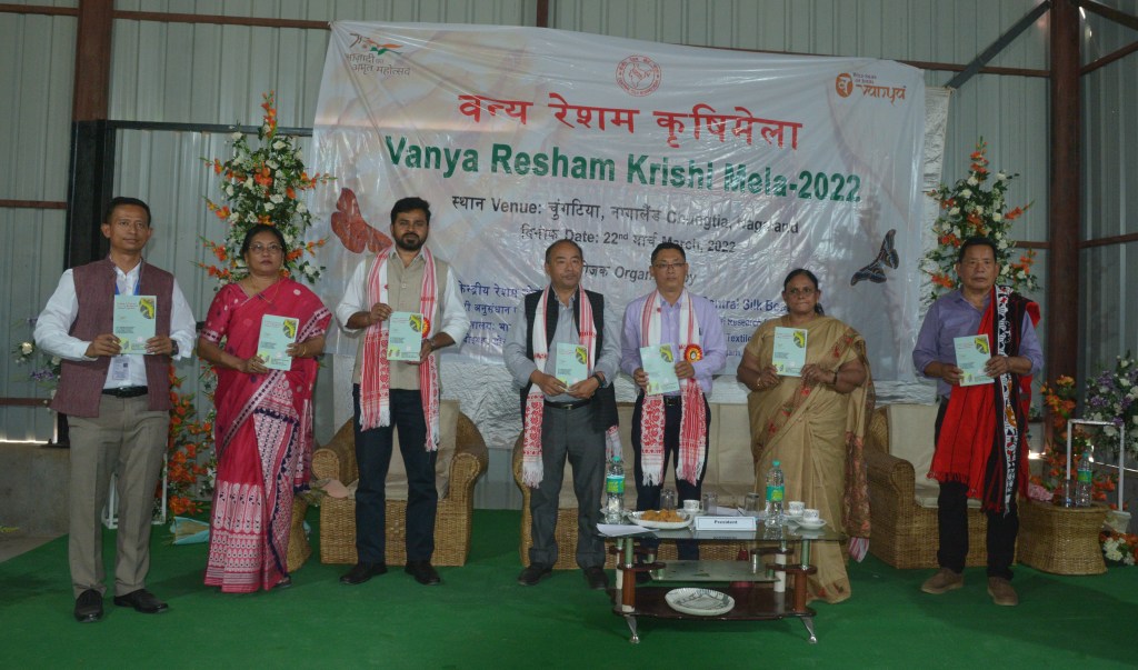 Central Muga Eri Research & Training Institute (CMER&TI), Central Silk Board, Ministry of Textiles, Govt. of India, Lahdoigarh organized a Mega Vanya Resham Krishi Mela at Chungtia village, Mokokchung on 22nd March, 2022. More than 300 Eri and Muga farmers attended the mela during which an exhibition was also organized by CMER&TI to showcase latest technologies developed by the Institute for enhanced Eri and Muga culture.