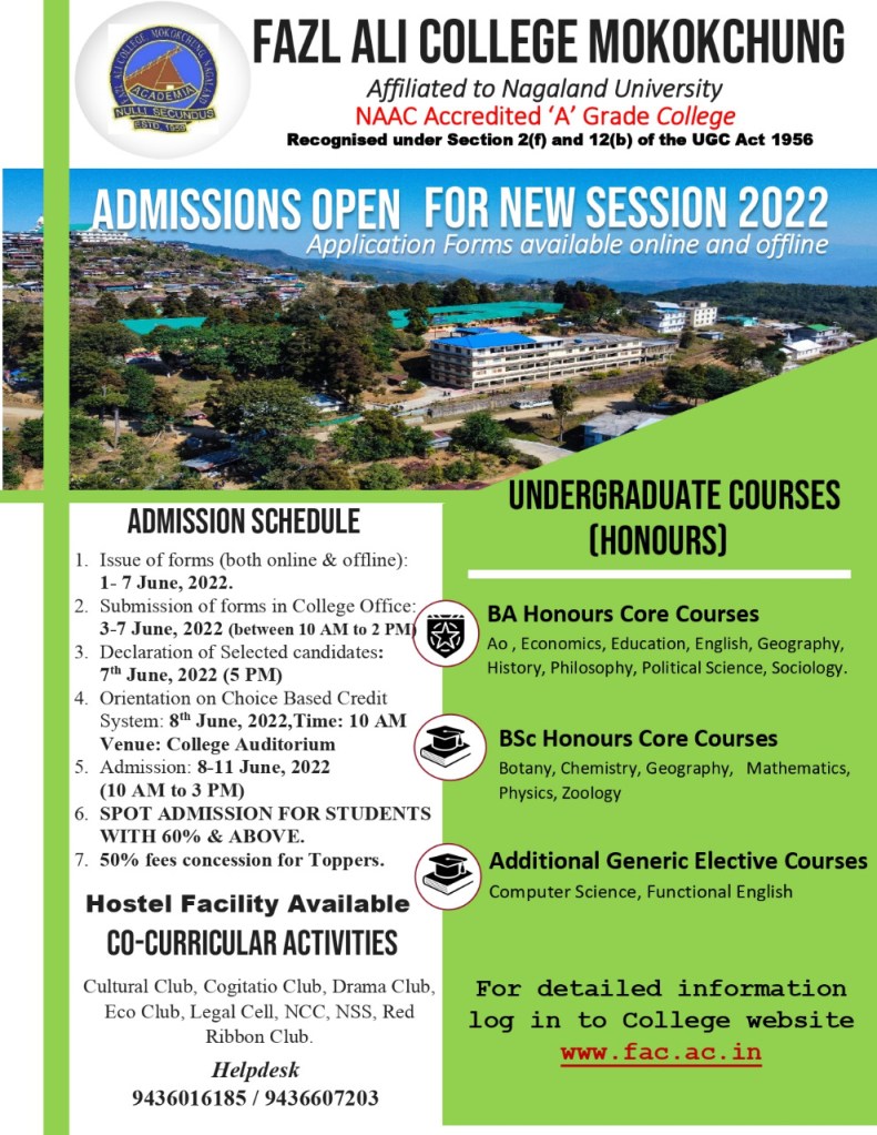 Breaking News Fazl Ali College Mokokchung Date: May 28, 2022Author: nokinketer 0 Comments NACC Accredited ‘A’ Grade College Admission Open for new session 2022 Application forms available online & offline Fazl Ali College Share this: Click to share on X (Opens in new window) X Click to share on Facebook (Opens in new window) Facebook Like Loading...