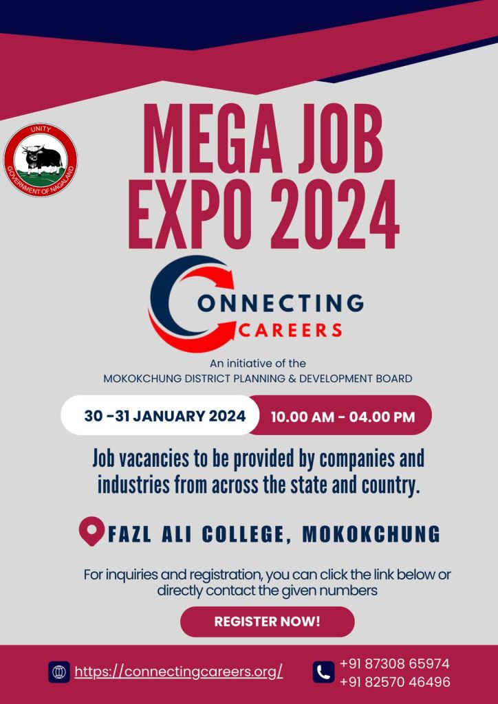 Advertisements MOKOKCHUNG MEGA JOB EXPO 2024 Date: January 11, 2024Author: nokinketer 0 Comments Share this: Share on X (Opens in new window) X Share on Facebook (Opens in new window) Facebook Like Loading...