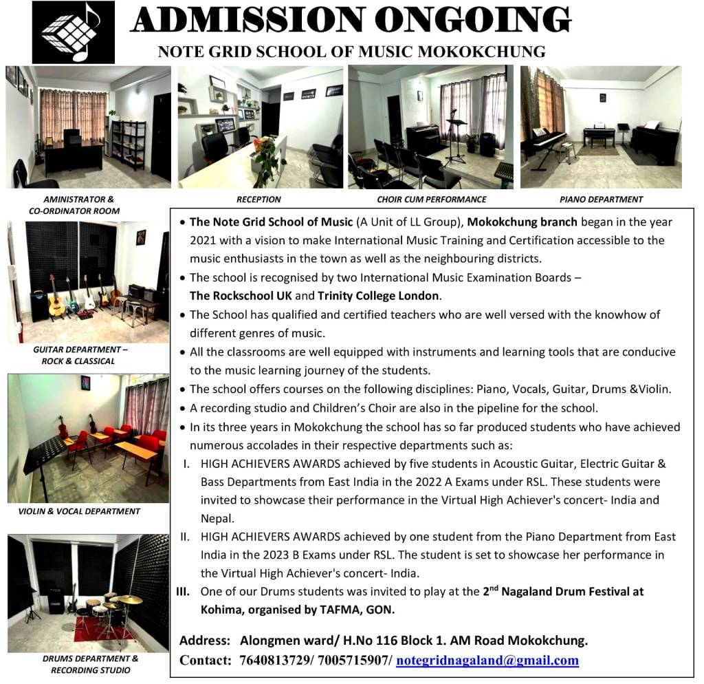 Advertisements ADMISSIONS OPEN AT THE NOTE GRID SCHOOL OF MUSIC, MOKOKCHUNG Date: March 6, 2024Author: nokinketer 0 Comments Share this: Click to share on X (Opens in new window) X Click to share on Facebook (Opens in new window) Facebook Like Loading...