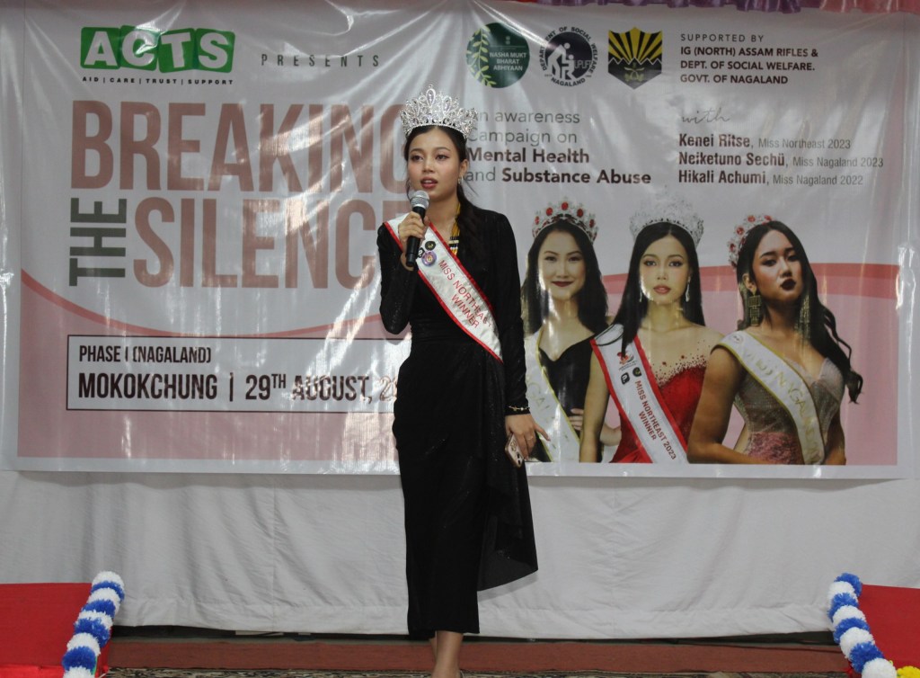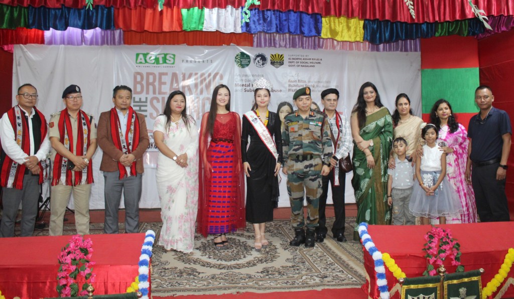 The event featured prominent personalities including Miss Kenie Ritse, Miss Northeast 2023, and Miss Hikali Achumi, Miss Nagaland 2022, who collaborated with Assam Rifles through ‘KRIPA, ACTS Foundation’ and ‘Dept Of Social Welfare, Nagaland’, highlighted the importance of mental well-being and the dangers of substance abuse.