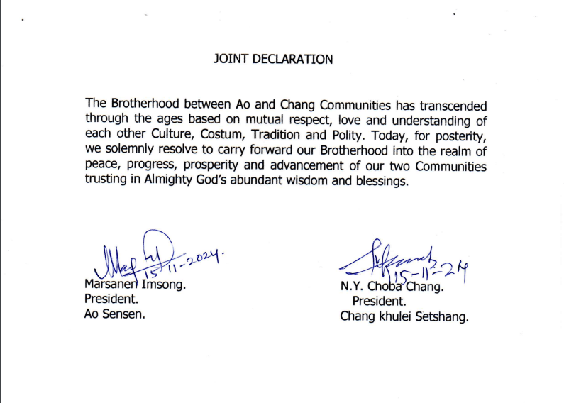 Ao Senden (Ao Hoho) Ao and Chang communities solemnly resolved to carry forward brotherhood into the realm of peace, progress, and prosperity Date: November 15, 2024Author: nokinketer 0 Comments Share this: Click to share on X (Opens in new window) X Click to share on Facebook (Opens in new window) Facebook Like Loading...
