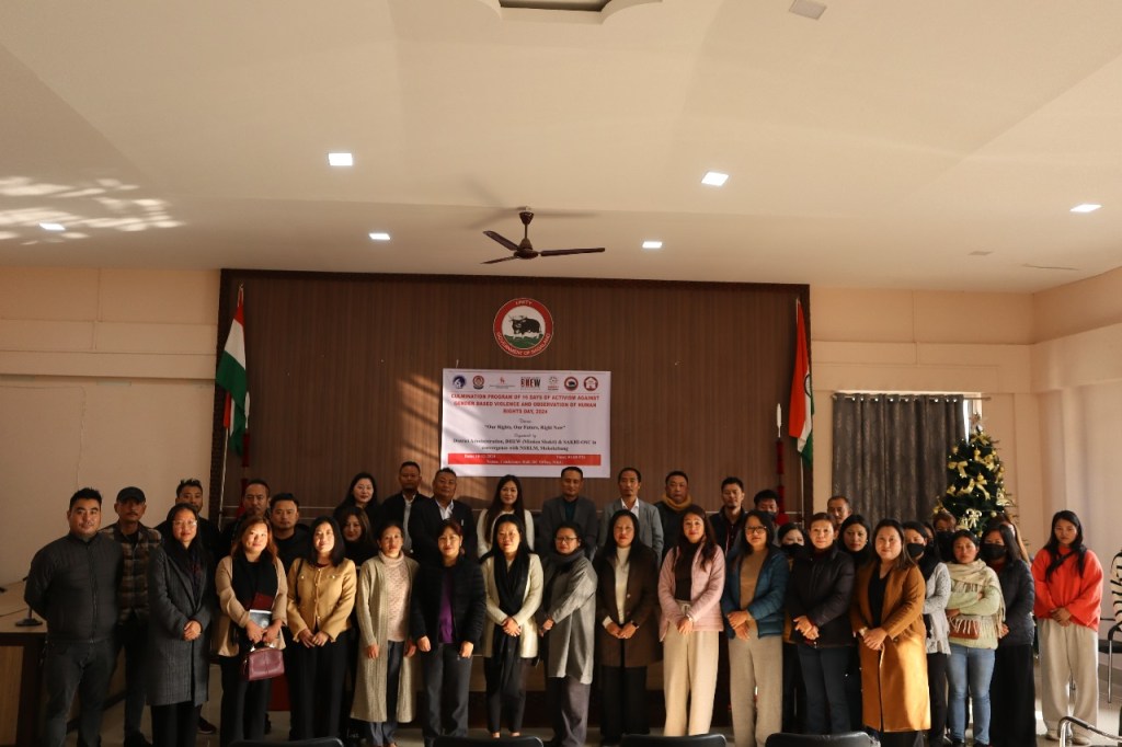 The District Administration, District Hub for Empowerment of Women (Mission Shakti), and Shakhi -One Stop Centre, in collaboration with the Nagaland State Rural Livelihood Mission (NSRLM), Mokokchung successfully organised the culmination program of the 16 Days of Activism Against Gender – Based Violence alongside the observance of Human Rights Day 2024, where the program was conducted at DCs Conference hall, Mokokchung on 10th December, 2024.