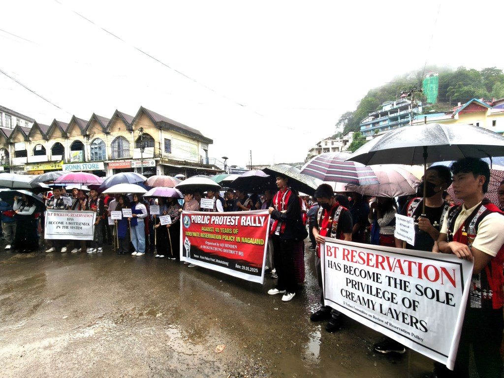 5 Tribes Committee on Review of Reservation Policy (CoRRP)-i district Head Quarters 8 – Mokokchung, Zunheboto, Wokha, Kohima, Chumoukidema, Nuiland, Tseminyu aser Dimapur yimtitem nung ‘public protest rally’ sentong ka democratic yimya nung ayongzüka liogo. Iba lungkak aitba sentong ya “Nagaland job reservation policy” küm 48 tashi metitemi benshia aruba anema Nagaland nung aliba kin pungu – Angami, Ao, Sumi, Lotha aser Rengma kintemi pei pei district H.Q nung ayongzüka liasü.