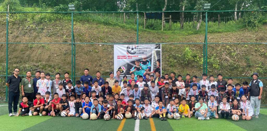The 35+ Mokokchung Football League (MFL) has launched a five-day Grassroot Football Coaching Clinic at the Mojabi Futsal Turf at Salangtem Ward, Mokokchung. The clinic, which began today, aims to provide young football enthusiasts with expert guidance and training under the guidance of Nagaland Coach Brando Kamson and his team from Barack FC.