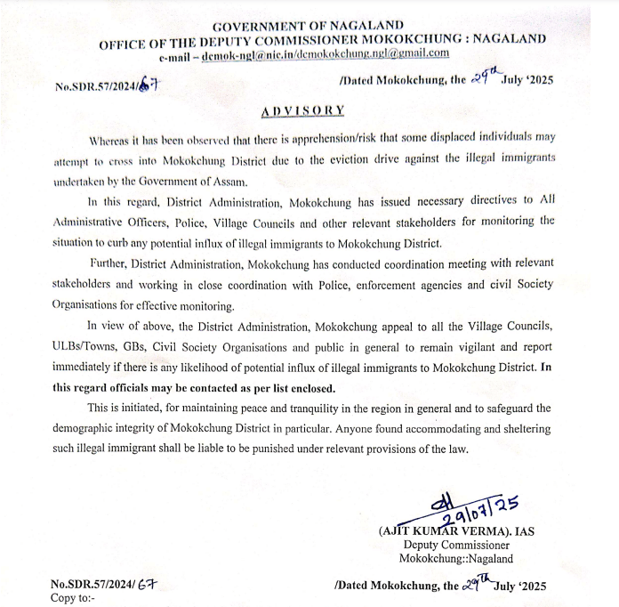 Breaking News Advisory from the Mokokchung Deputy Commissioner Date: July 29, 2025Author: nokinketer 0 Comments Page 1 Page 2 Share this: Share on X (Opens in new window) X Share on Facebook (Opens in new window) Facebook Like Loading...