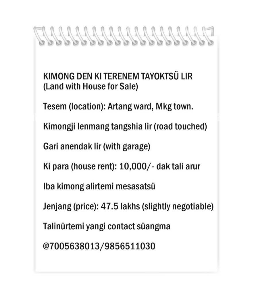 Advertisements ARTANG WARD NUNG KIMONG DEN KI TERENEM TAYOKTSÜ LIR (Land with house for sale at Artang Ward, Mokokchung) Date: October 9, 2025Author: nokinketer 0 Comments Share this: Click to share on X (Opens in new window) X Click to share on Facebook (Opens in new window) Facebook Like Loading...