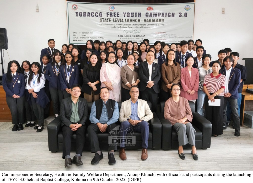 Mokokchung, 09 October (www.nokinketer.in): The state-level launch of Tobacco Free Youth Campaign 3.0, organized by the National Tobacco Control Programme (NTCP) under the Department of Health & Family Welfare, Nagaland, was held at Baptist College, Kohima, on 9th October 2025.