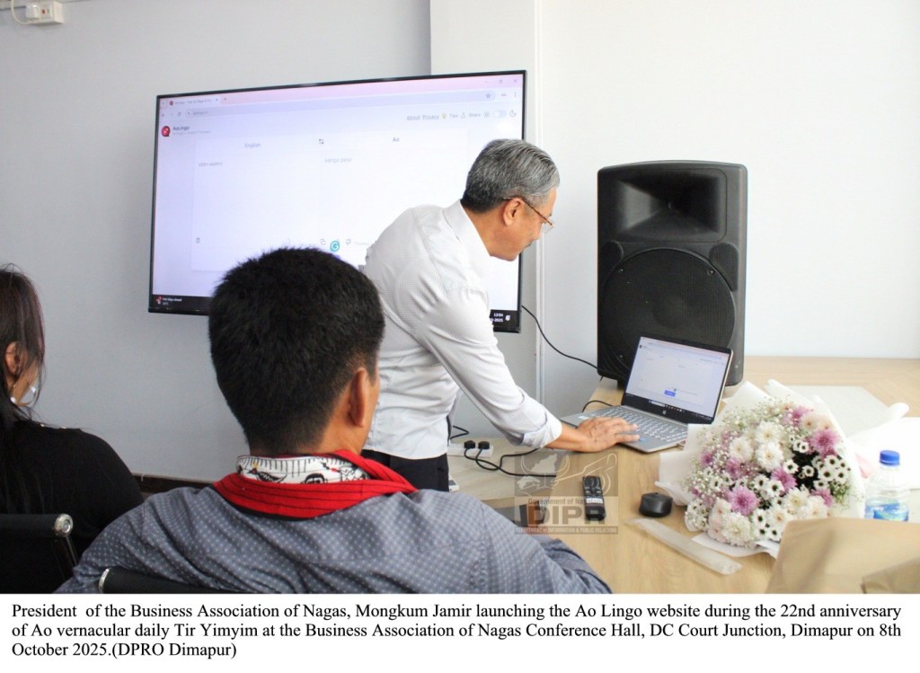 Mokokchung, 09 October (www.nokinketer.in): Ao vernacular daily Tir Yimyim celebrated its 22nd anniversary on Wednesday at the Business Association of Nagas (BAN) Conference Hall, DC Court Junction, Dimapur, on 8th of October 2025. The milestone celebration also marked the official launch of an AI-powered translation website, “Ao Lingo”, designed to facilitate translation between Ao and English languages.