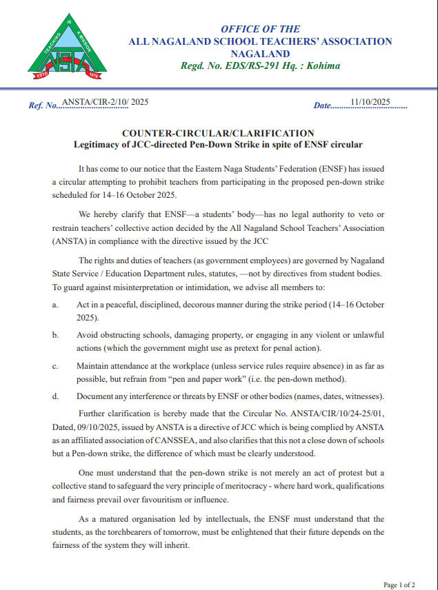 Breaking News COUNTER-CIRCULAR/CLARIFICATION Legitimacy of JCC‐directed Pen-Down Strike in spite of ENSF circular Date: October 11, 2025Author: nokinketer 0 Comments Share this: Click to share on X (Opens in new window) X Click to share on Facebook (Opens in new window) Facebook Like Loading...