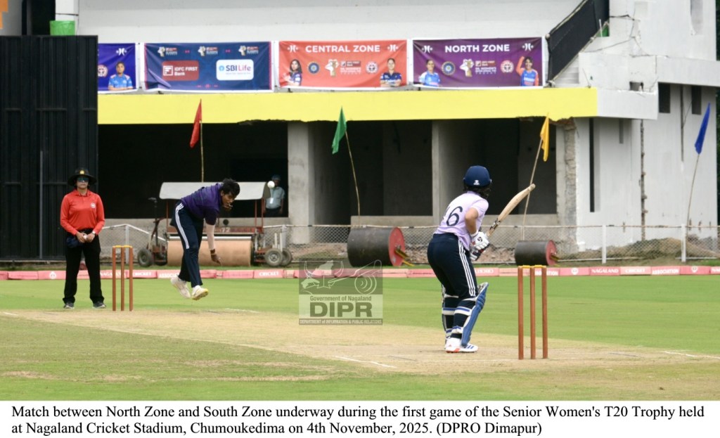 Mokokchung, 04-Nov-2025 (www.nokinketer.in): The IDFC FIRST Bank Senior Women’s Inter-Zonal T20 Trophy for the 2025–26 domestic season kicked off with the first match of the tournament between North Zone and South Zone on the 4th of November, 2025, at the Nagaland Cricket Stadium, Chumoukedima. The match commenced after an invocation prayer by Gwanilo Khing, Pastor, Rengma Baptist Church, Sovima.