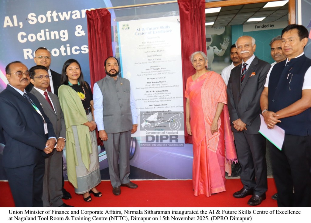 Mokokchung, 15th November, 2025 (www.nokinketer.in): Union Minister for Finance and Corporate Affairs, Nirmala Sitharaman inaugurated the AI & Future Skills Centre of Excellence at Nagaland Tool Room & Training Centre (NTTC), Dimapur, during her official tour to the state on 15th November 2025.