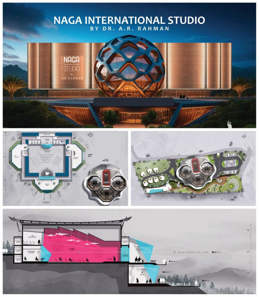 The Naga International Studio is designed by Bluecube Architects and Mr. Riyasdeen Riyan, the son-in-law of Dr. A.R. Rahman. The project has been facilitated by the Task Force for Music & Arts (TAFMA) and the Investment & Development Authority of Nagaland (IDAN) and is proposed to be funded through private corporate investment.