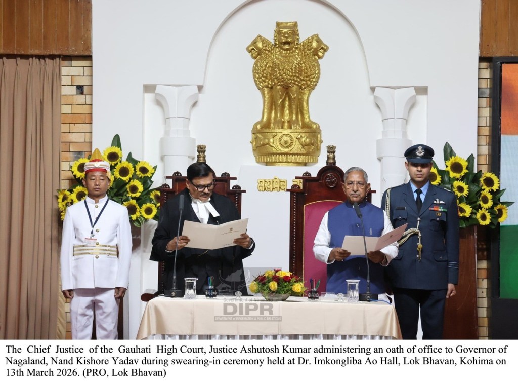 Mokokchung, 13th March, 2026 (www.nokinketer.in): Nand Kishore Yadav was sworn in as the 23rd Governor of Nagaland in a ceremony held at Dr. Imkongliba Ao Hall, Lok Bhavan, Kohima on 13th March 2026.