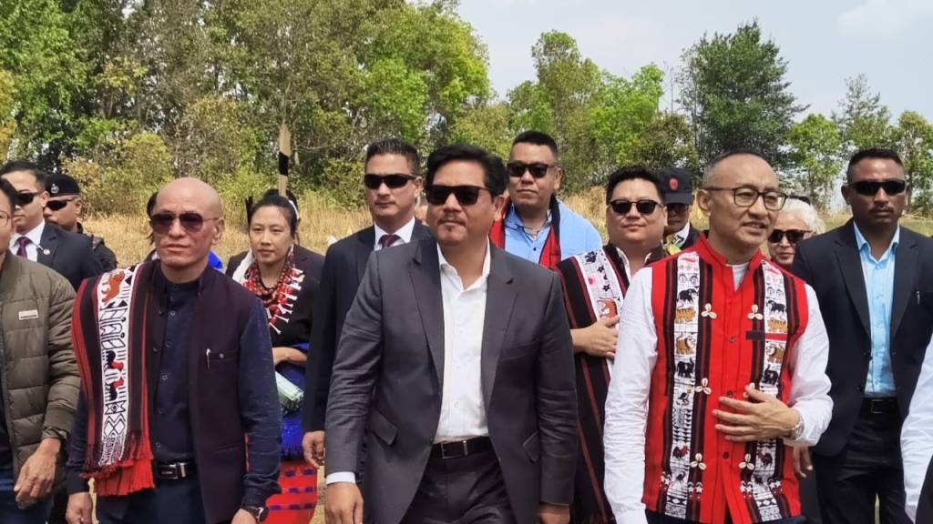 Sangma arrived at Longkhum village in Mokokchung, where he was accorded a traditional Ao welcome. He interacted with village council members (Putu Menden) at the community hall, where he later addressed a public gathering.